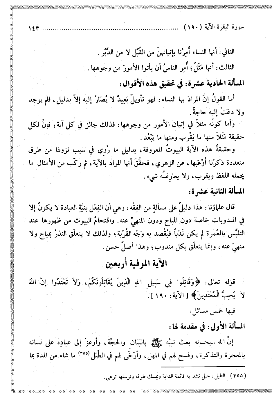[الْآيَةُ الْمُوفِيَةُ أَرْبَعِينَ قَوْله تَعَالَى وَقَاتِلُوا فِي سَبِيلِ اللَّهِ الَّذِينَ يُقَاتِلُونَكُمْ]
