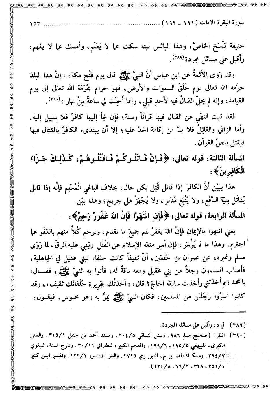 وَقَدْ رَوَى الْأَئِمَّةُ عَنْ ابْنِ عَبَّاسٍ «أَنَّ النَّبِيَّ - صَلَّى اللَّهُ عَلَيْهِ وَسَلَّمَ - قَالَ يَوْمَ فَتْحِ مَكَّةَ: إنَّ هَذَا الْبَلَدَ حَرَّمَهُ اللَّهُ تَعَالَى يَوْمَ خَلَقَ السَّمَوَاتِ وَالْأَرْضَ، فَهُوَ حَرَامٌ بِحُرْمَةِ اللَّهِ تَعَالَى إلَى يَوْمِ الْقِيَامَةِ، وَإِنَّهُ لَمْ يَحِلَّ الْقِتَالُ فِيهِ لِأَحَدٍ قَبْلِي وَإِنَّمَا أُحِلَّتْ لِي سَاعَةً مِنْ نَهَارٍ».