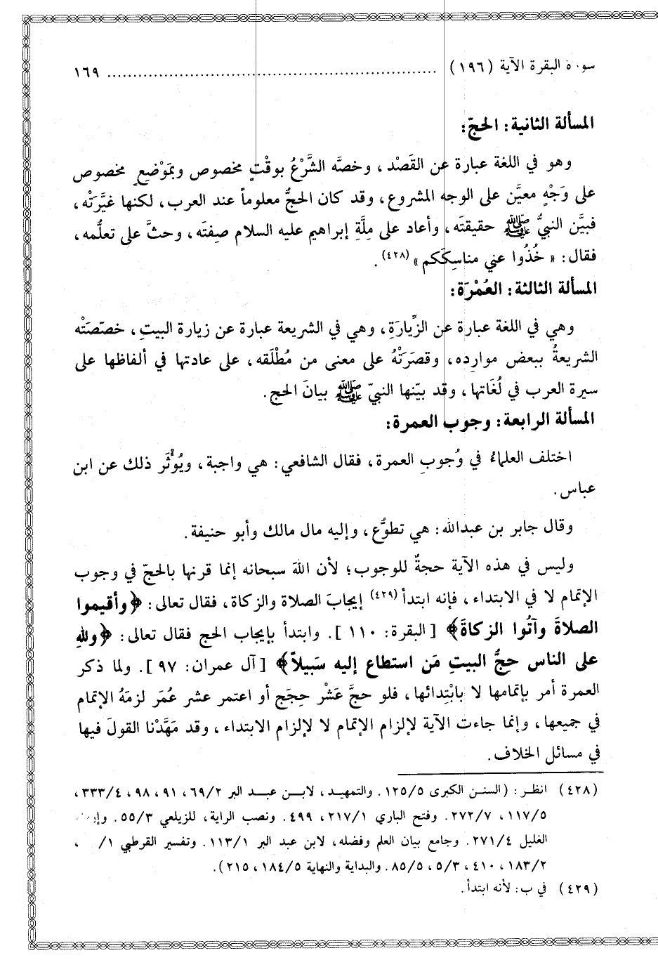 وَلَمَّا ذَكَرَ الْعُمْرَةَ أَمَرَ بِإِتْمَامِهَا لَا بِابْتِدَائِهَا، فَلَوْ حَجَّ عَشْرَ حِجَجٍ أَوْ اعْتَمَرَ عَشْرَ عُمَرَ لَزِمَهُ الْإِتْمَامُ فِي جَمِيعِهَا، وَإِنَّمَا جَاءَتْ الْآيَةُ لِإِلْزَامِ الْإِتْمَامِ لَا لِإِلْزَامِ الِابْتِدَاءِ، وَقَدْ مَهَّدْنَا الْقَوْلَ فِيهَا فِي مَسَائِلِ الْخِلَافِ.