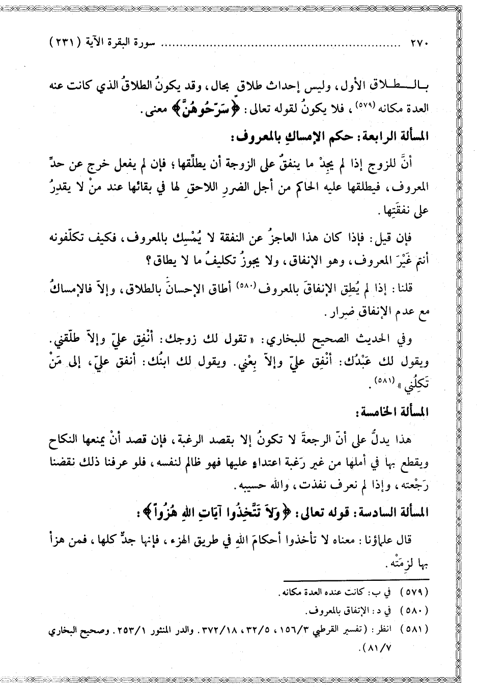 [مَسْأَلَةٌ حُكْمُ الْإِمْسَاكِ بِالْمَعْرُوفِ]