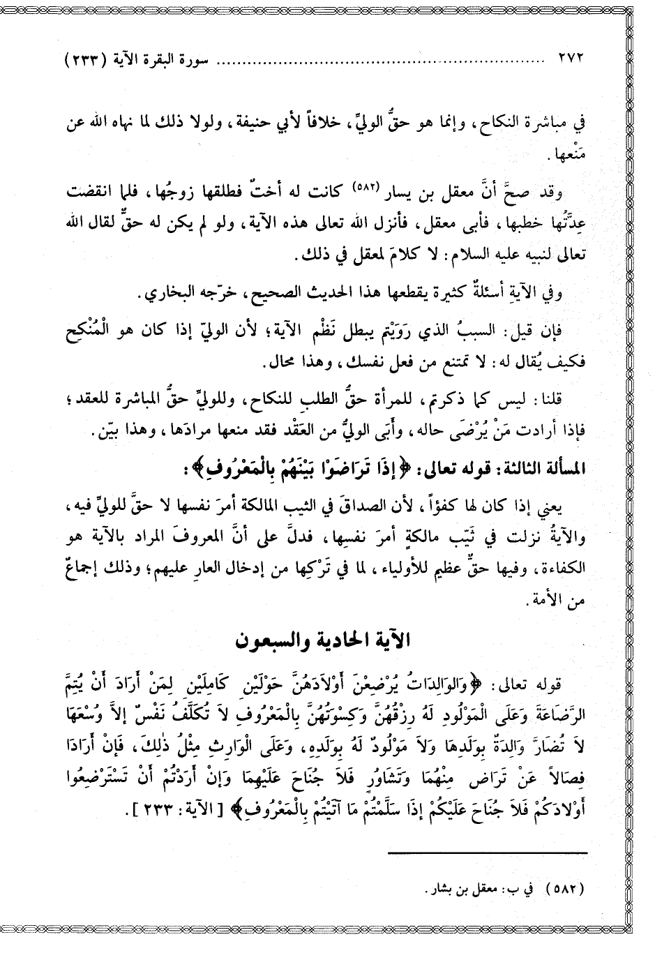 [الْآيَة الْحَادِيَة وَالسَّبْعُونَ قَوْله تَعَالَى وَالْوَالِدَاتُ يُرْضِعْنَ أَوْلَادَهُنَّ حَوْلَيْنِ كَامِلَيْنِ]