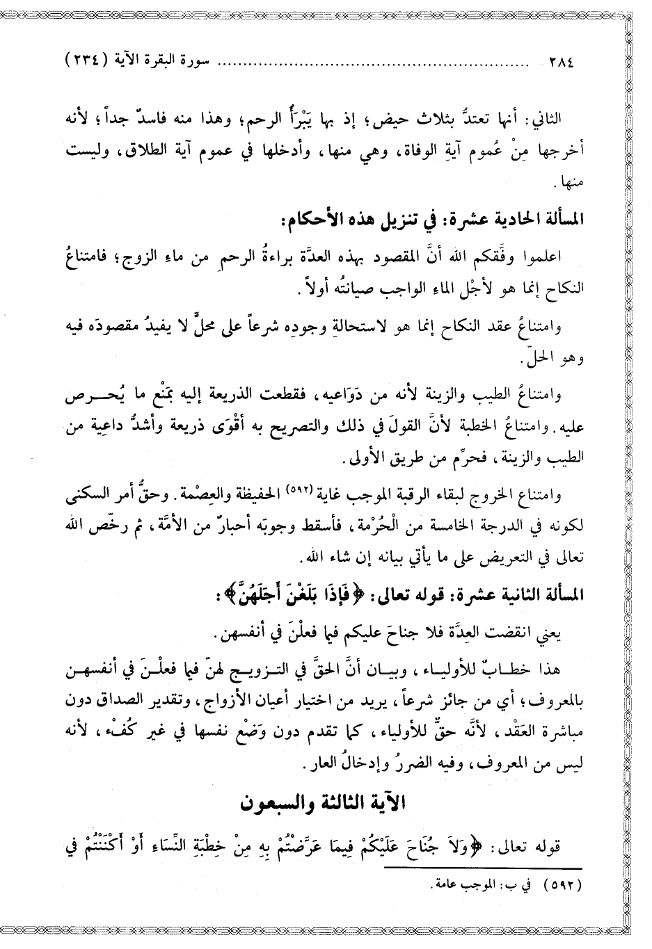 ِ أَوْ أَكْنَنْتُمْ فِي أَنْفُسِكُمْ عَلِمَ اللَّهُ أَنَّكُمْ سَتَذْكُرُونَهُنَّ وَلَكِنْ لا تُوَاعِدُوهُنَّ سِرًّا إِلا أَنْ تَقُولُوا قَوْلا مَعْرُوفًا وَلا تَعْزِمُوا عُقْدَةَ النِّكَاحِ حَتَّى يَبْلُغَ الْكِتَابُ أَجَلَهُ} [البقرة: 235]