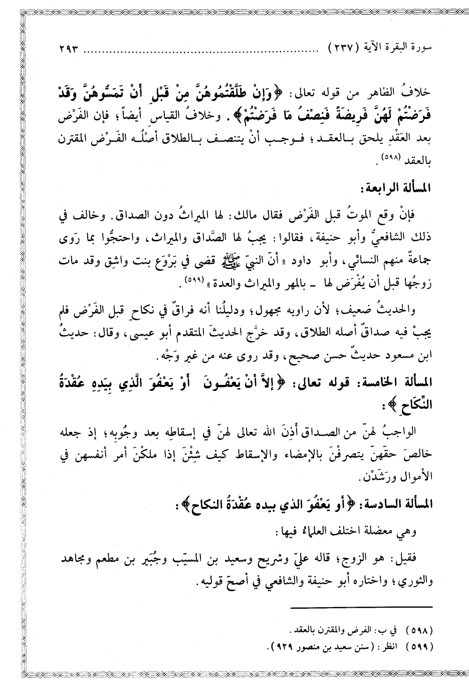 خِلَافُ الظَّاهِرِ مِنْ قَوْله تَعَالَى: {وَإِنْ طَلَّقْتُمُوهُنَّ مِنْ قَبْلِ أَنْ تَمَسُّوهُنَّ وَقَدْ فَرَضْتُمْ لَهُنَّ فَرِيضَةً فَنِصْفُ مَا فَرَضْتُمْ} [البقرة: 237]