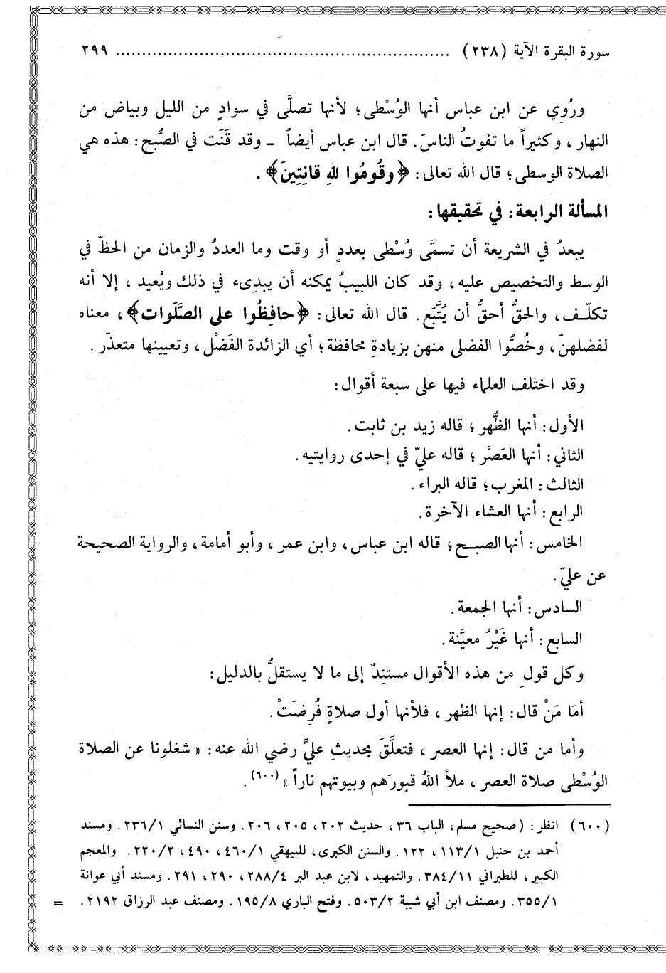 [مَسْأَلَةٌ تَحْقِيقُ الصَّلَاةِ الْوُسْطَى]