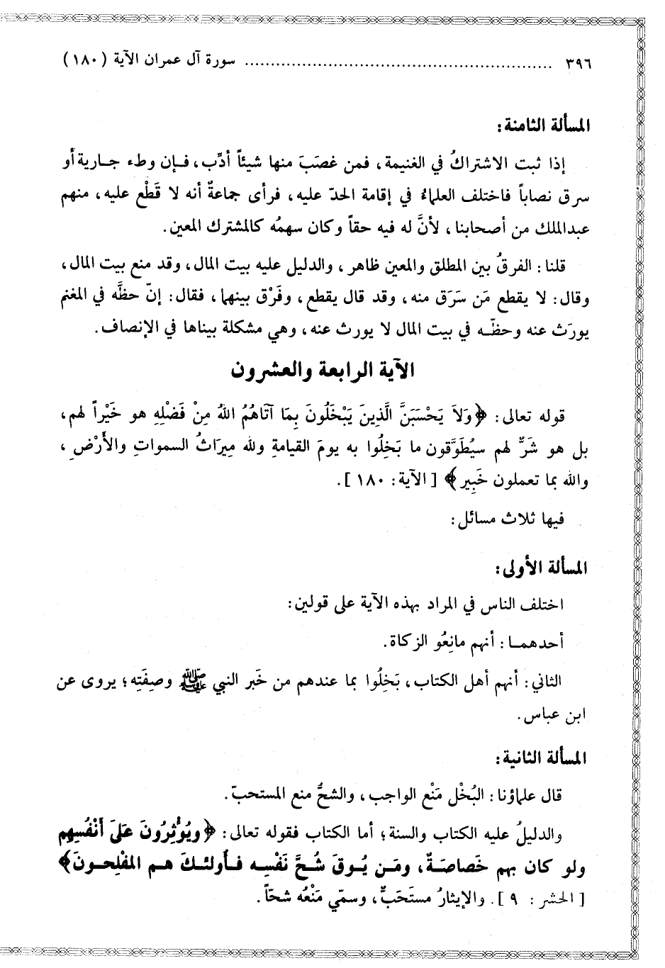 [الْآيَة الرَّابِعَة وَالْعُشْرُونَ قَوْله تَعَالَى وَلَا يَحْسَبَنَّ الَّذِينَ يَبْخَلُونَ بِمَا آتَاهُمْ اللَّهُ مِنْ فَضْلِهِ]