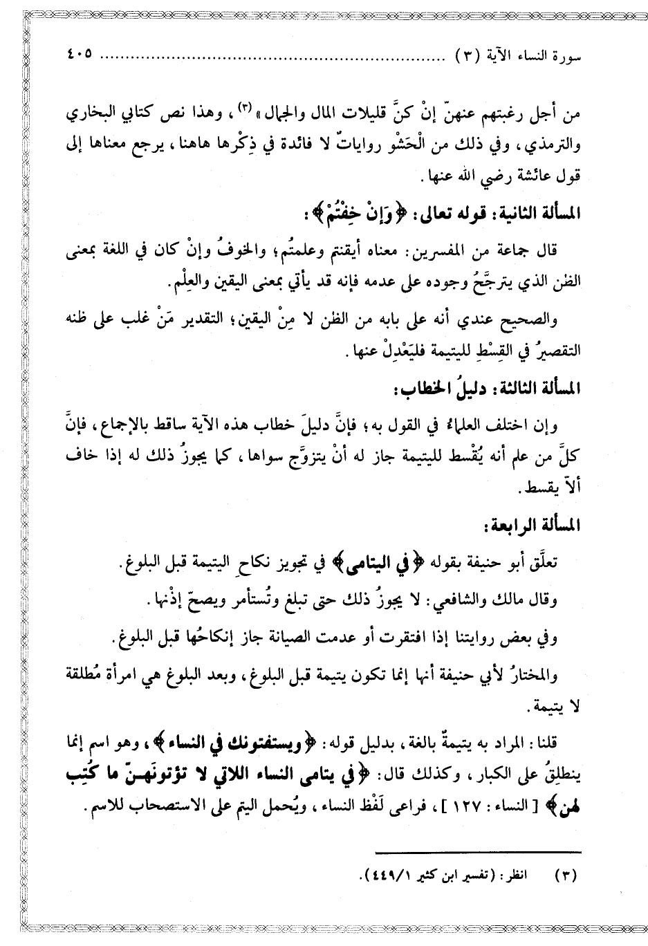 مِنْ أَجْلِ رَغْبَتِهِمْ عَنْهُنَّ إنْ كُنَّ قَلِيلَاتِ الْمَالِ وَالْجَمَالِ "، وَهَذَا نَصُّ كِتَابَيْ الْبُخَارِيِّ وَالتِّرْمِذِيِّ، وَفِي ذَلِكَ مِنْ الْحَشْوِ رِوَايَاتٌ لَا فَائِدَةَ فِي ذِكْرِهَا هَاهُنَا، يَرْجِعُ مَعْنَاهَا إلَى قَوْلِ عَائِشَةَ - رَضِيَ اللَّهُ عَنْهَا -.