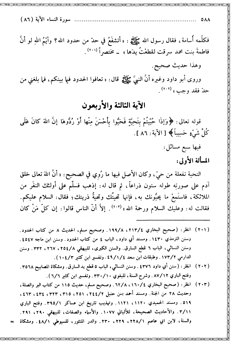 [الْآيَة الثَّالِثَةُ وَالْأَرْبَعُونَ قَوْله تَعَالَى وَإِذَا حُيِّيتُمْ بِتَحِيَّةٍ فَحَيُّوا بِأَحْسَنَ مِنْهَا]