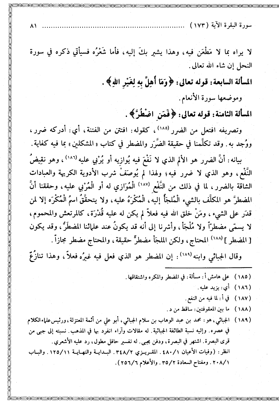 الْمَسْأَلَةُ السَّابِعَةُ: قَوْله تَعَالَى: {وَمَا أُهِلَّ بِهِ لِغَيْرِ اللَّهِ} [البقرة: 173] وَمَوْضِعُهَا سُورَةُ الْأَنْعَامِ.