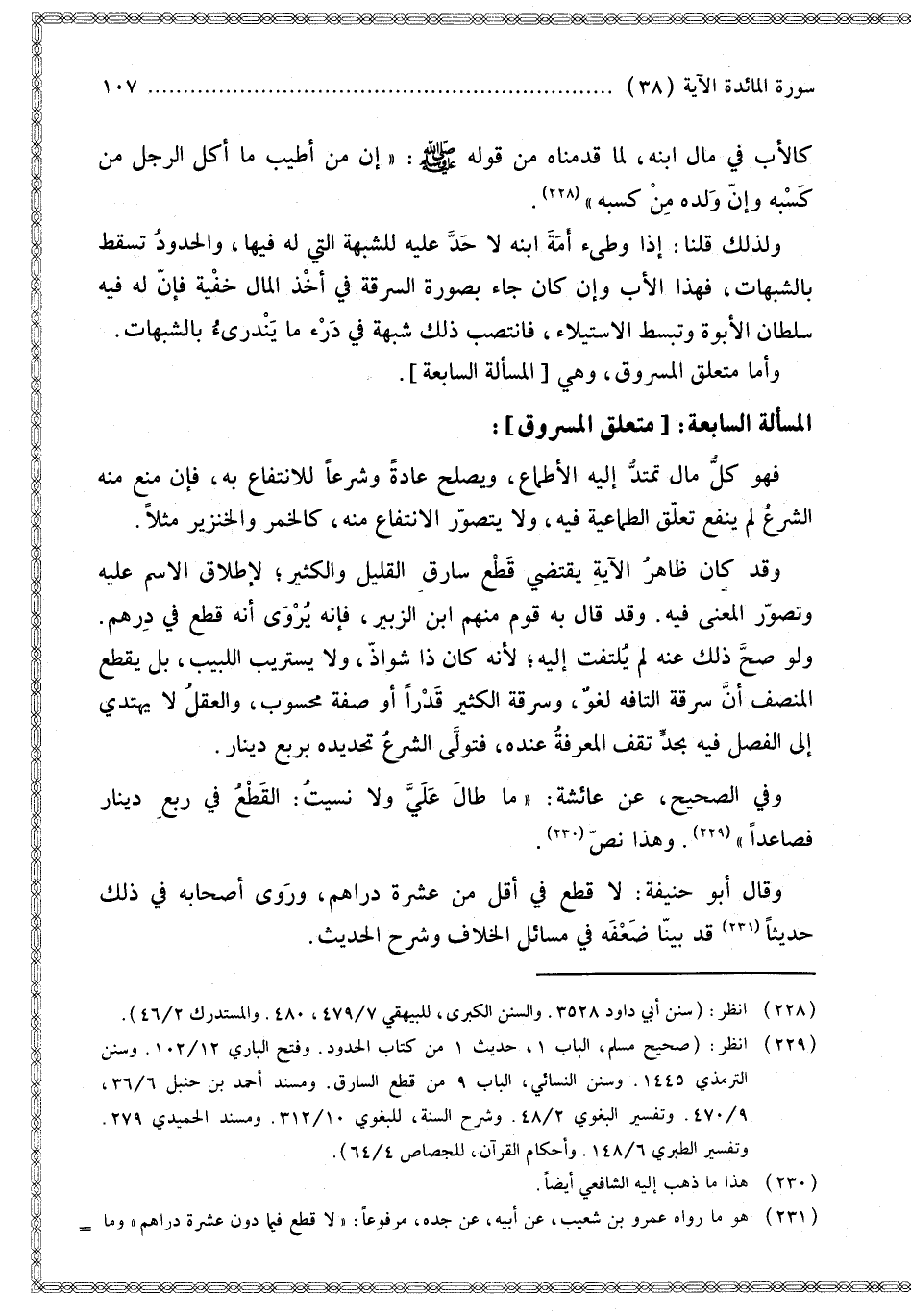 وَلَوْ صَحَّ ذَلِكَ عَنْهُ لَمْ يُلْتَفَتُ إلَيْهِ؛ لِأَنَّهُ كَانَ ذَا شَوَاذٍّ، وَلَا يَسْتَرِيبُ اللَّبِيبُ، بَلْ يَقْطَعُ الْمُنْصِفُ أَنَّ سَرِقَةَ التَّافِهِ لَغْوٌ، وَسَرِقَةَ الْكَثِيرِ قَدْرًا أَوْ صِفَةً مَحْسُوبٌ، وَالْعَقْلُ لَا يَهْتَدِي إلَى الْفَصْلِ فِيهِ بِحَدٍّ تَقِفُ الْمَعْرِفَةُ عِنْدَهُ، فَتَوَلَّى الشَّرْعُ تَحْدِيدَهُ بِرُبْعِ دِينَارٍ.