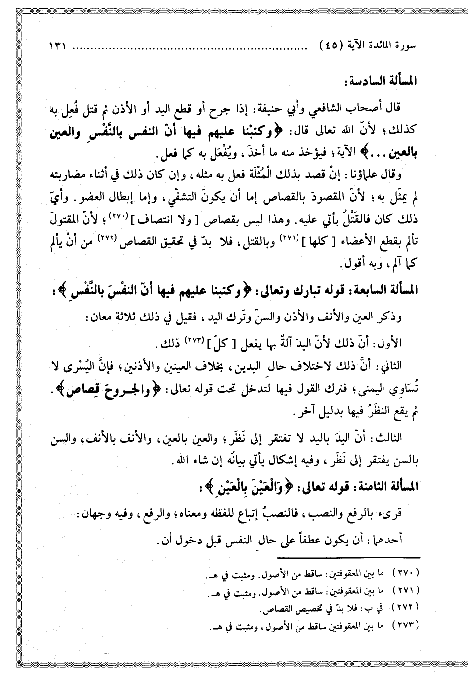 [مَسْأَلَة قِرَاءَة قَوْله تَعَالَى وَالْعَيْن بِالْعَيْنِ]