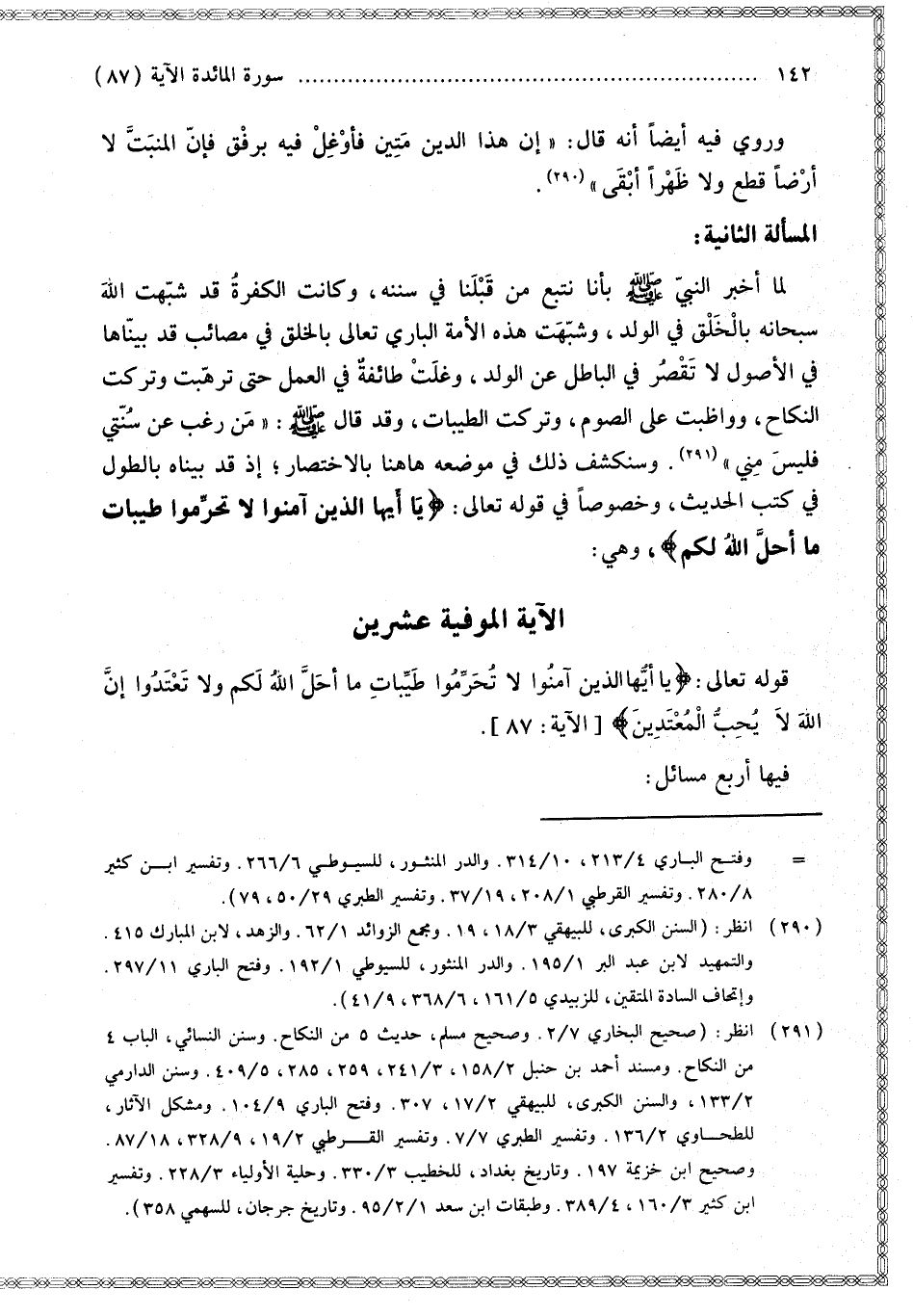 ْ وَلا تَعْتَدُوا إِنَّ اللَّهَ لا يُحِبُّ الْمُعْتَدِينَ} [المائدة: 87]. فِيهَا أَرْبَعُ مَسَائِلَ: