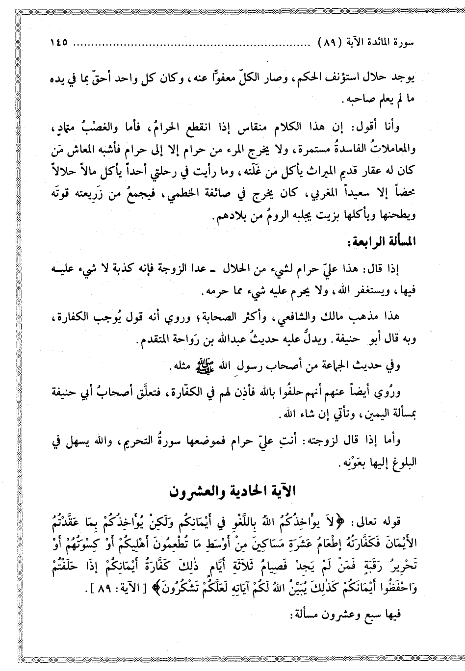 ْ وَلَكِنْ يُؤَاخِذُكُمْ بِمَا عَقَّدْتُمُ الأَيْمَانَ فَكَفَّارَتُهُ إِطْعَامُ عَشَرَةِ مَسَاكِينَ مِنْ أَوْسَطِ مَا تُطْعِمُونَ أَهْلِيكُمْ أَوْ كِسْوَتُهُمْ أَوْ تَحْرِيرُ رَقَبَةٍ فَمَنْ لَمْ يَجِدْ فَصِيَامُ ثَلاثَةِ أَيَّامٍ ذَلِكَ كَفَّارَةُ أَيْمَانِكُمْ إِذَا حَلَفْتُمْ وَاحْفَظُوا أَيْمَانَكُمْ كَذَلِكَ يُبَيِّنُ اللَّهُ لَكُمْ آيَاتِهِ لَعَلَّكُمْ تَشْكُرُونَ} [المائدة: 89].