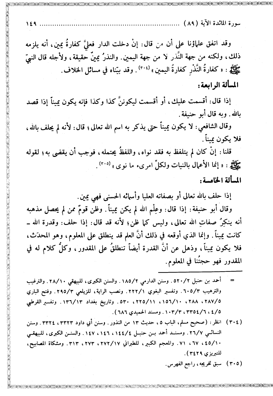 الْمَسْأَلَةُ الْخَامِسَةُ: إذَا حَلَفَ بِاَللَّهِ تَعَالَى أَوْ بِصِفَاتِهِ الْعُلْيَا وَأَسْمَائِهِ الْحُسْنَى فَهِيَ يَمِينٌ.
