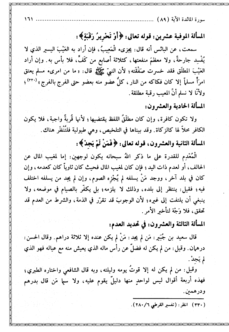 الْمَسْأَلَةُ الْمُوفِيَةُ عِشْرِينَ: قَوْله تَعَالَى {أَوْ تَحْرِيرُ رَقَبَةٍ} [المائدة: 89]: