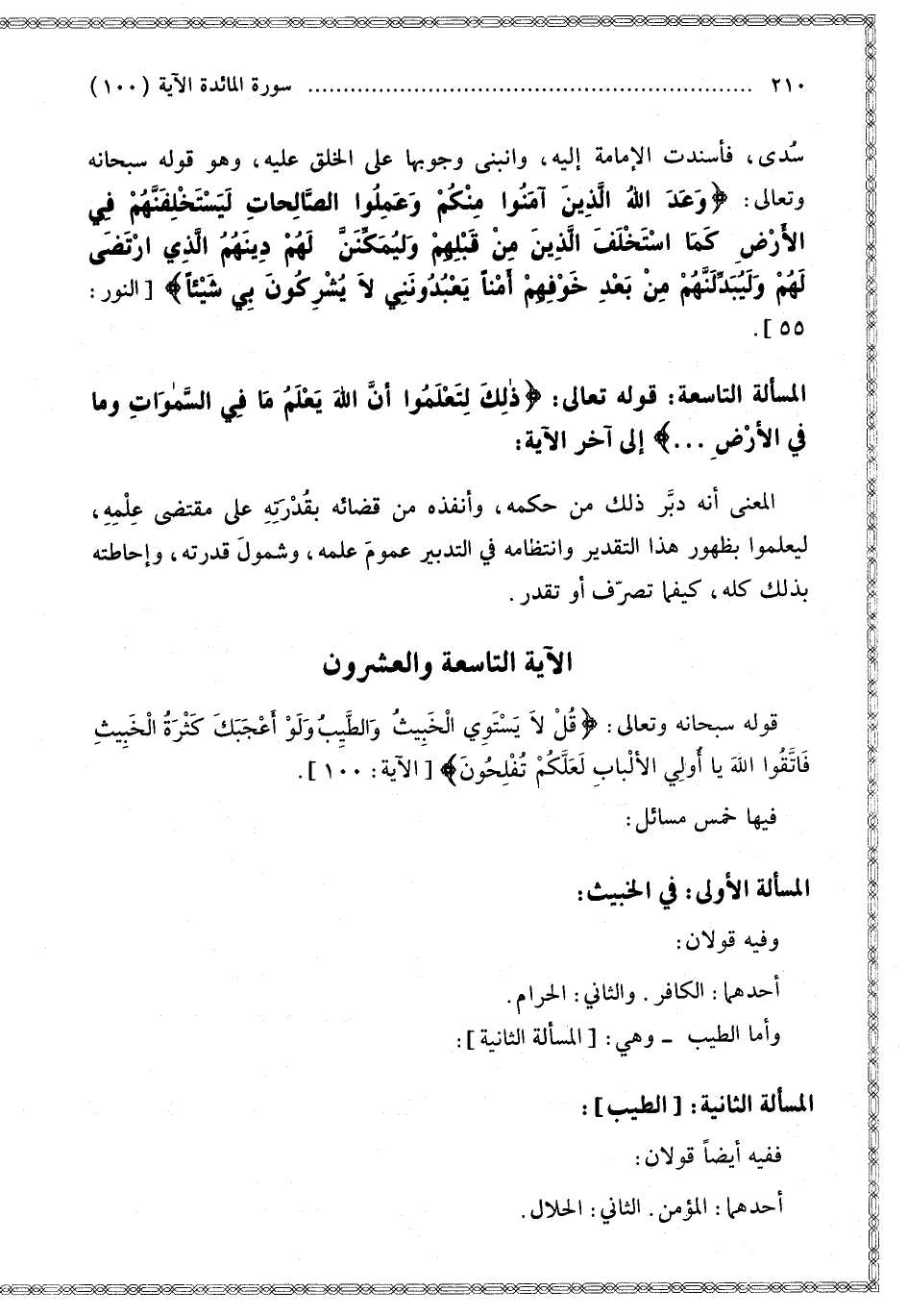 [الْآيَة التَّاسِعَة وَالْعُشْرُونَ قَوْله تَعَالَى قُلْ لَا يَسْتَوِي الْخَبِيثُ وَالطَّيِّبُ]