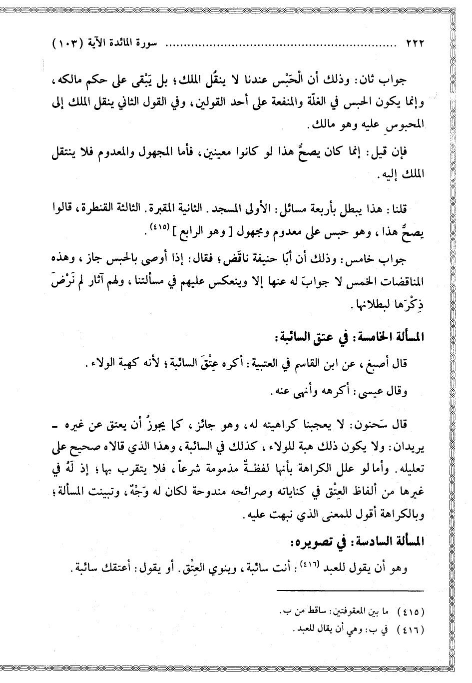 [مَسْأَلَةُ عِتْقِ السَّائِبَةِ]