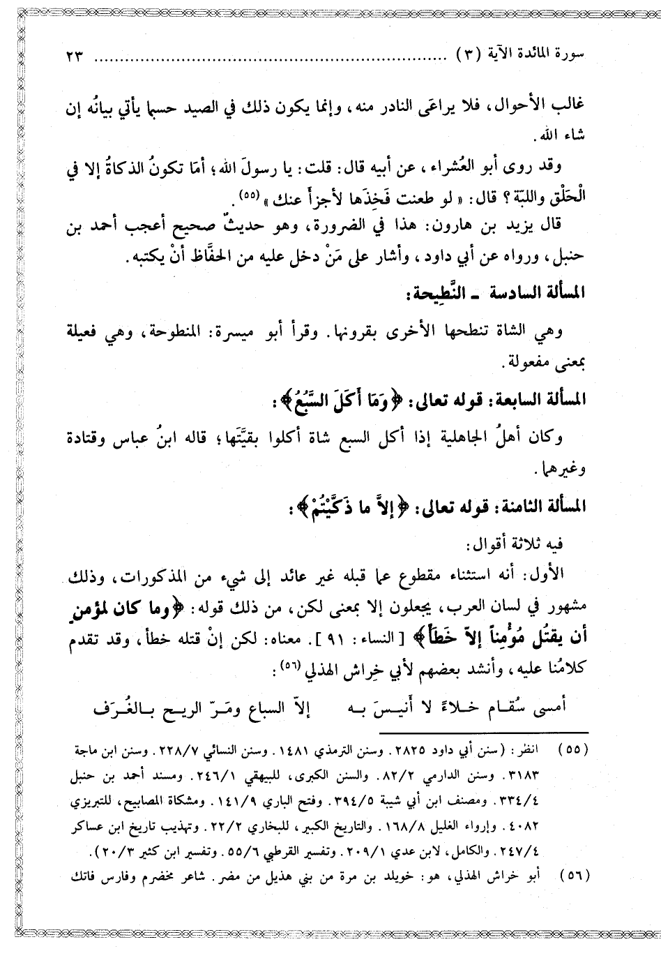 [مَسْأَلَة مَعْنَى قَوْله تَعَالَى إلَّا مَا ذَكَّيْتُمْ]