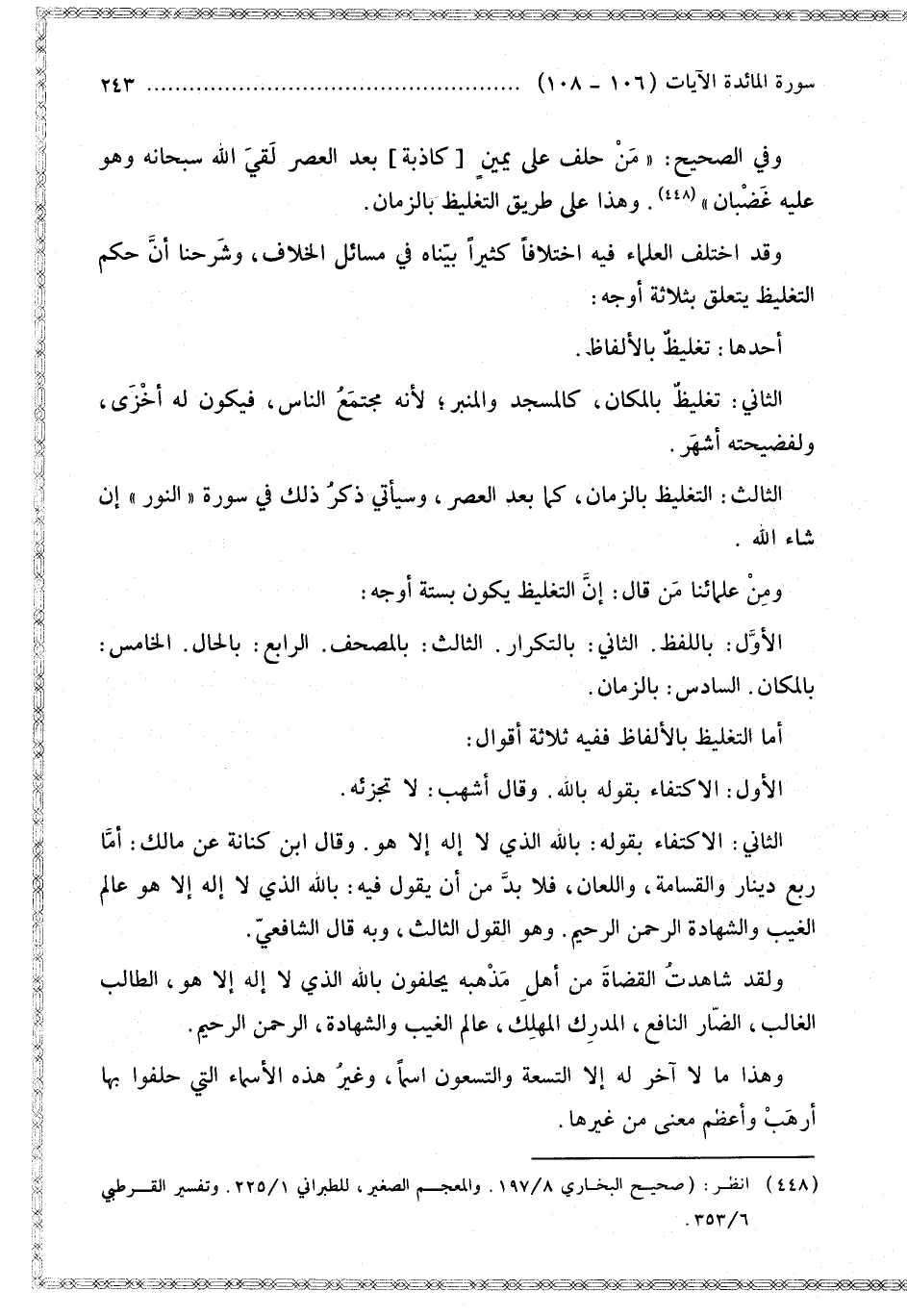 وَقَدْ اخْتَلَفَ الْعُلَمَاءُ فِيهِ اخْتِلَافًا كَثِيرًا بَيَّنَّاهُ فِي مَسَائِلِ الْخِلَافِ وَشَرَحْنَا أَنَّ حُكْمَ التَّغْلِيظِ يَتَعَلَّقُ بِثَلَاثَةِ أَوْجُهٍ: