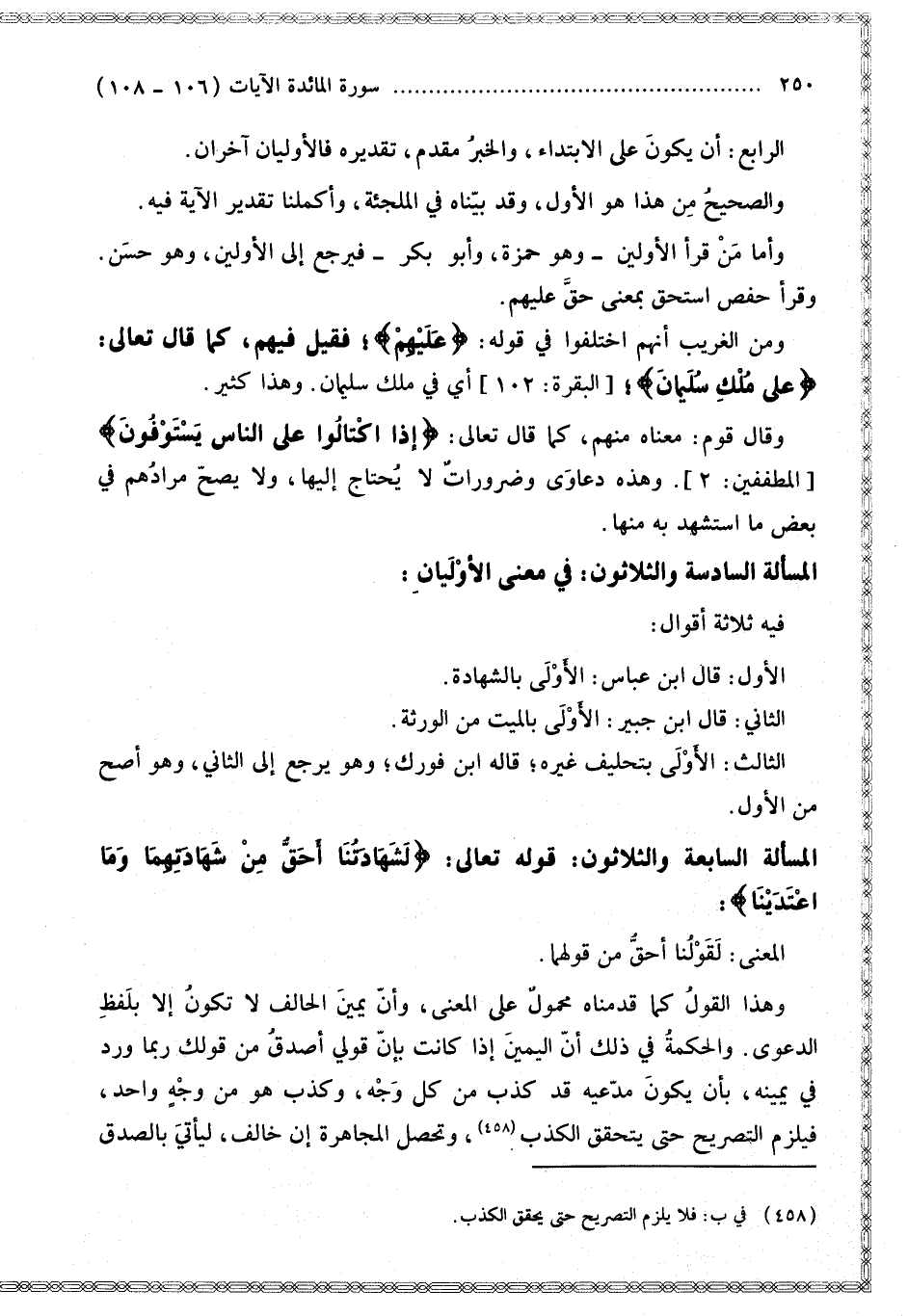 الْمَسْأَلَةُ السَّابِعَةُ وَالثَّلَاثُونَ: قَوْله تَعَالَى: {لَشَهَادَتُنَا أَحَقُّ مِنْ شَهَادَتِهِمَا وَمَا اعْتَدَيْنَا} [المائدة: 107]
