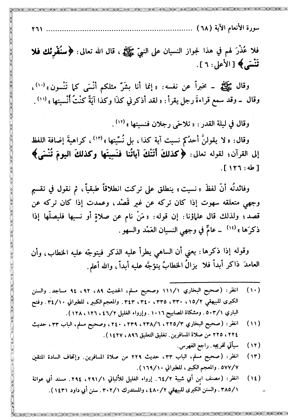 فَلَا عُذْرَ لَهُمْ فِي هَذَا لِجَوَازِ النِّسْيَانِ عَلَى النَّبِيِّ - صَلَّى اللَّهُ عَلَيْهِ وَسَلَّمَ - قَالَ اللَّهُ تَعَالَى: {سَنُقْرِئُكَ فَلا تَنْسَى} [الأعلى: 6].