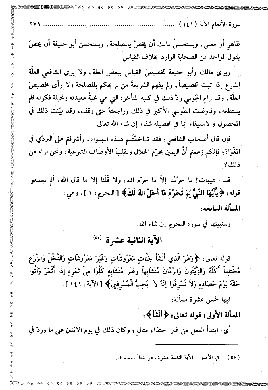 الْمَسْأَلَةُ الْأُولَى: قَوْله تَعَالَى: {أَنْشَأَ} [الأنعام: 141]: أَيْ: ابْتَدَأَ الْفِعْلَ مِنْ غَيْرِ احْتِذَاءِ مِثَالٍ؛ وَكَانَ ذَلِكَ فِي يَوْمِ الِاثْنَيْنِ عَلَى مَا وَرَدَ فِي