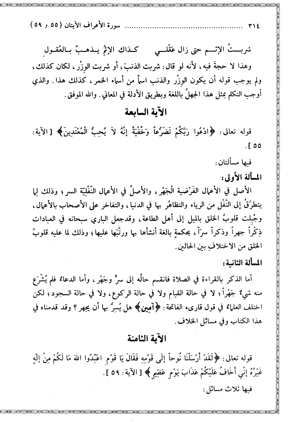 [الْآيَة السَّابِعَة قَوْله تَعَالَى اُدْعُوا رَبَّكُمْ تَضَرُّعًا وَخُفْيَةً]