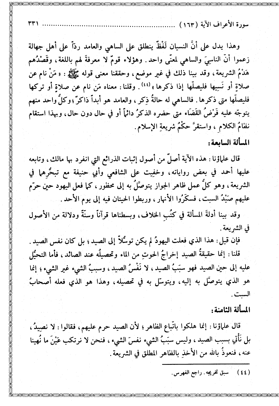 الْمَسْأَلَةُ السَّابِعَةُ: