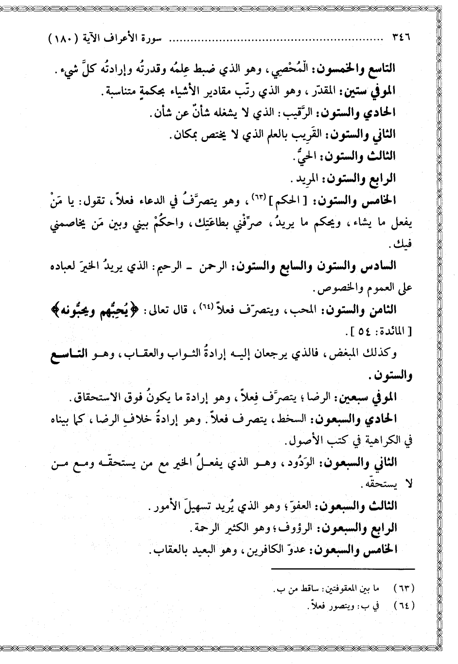 التَّاسِعُ وَالْخَمْسُونَ: الْمُحْصِي، وَهُوَ الَّذِي ضَبَطَ عِلْمُهُ وَقُدْرَتُهُ وَإِرَادَتُهُ كُلَّ شَيْءٍ.