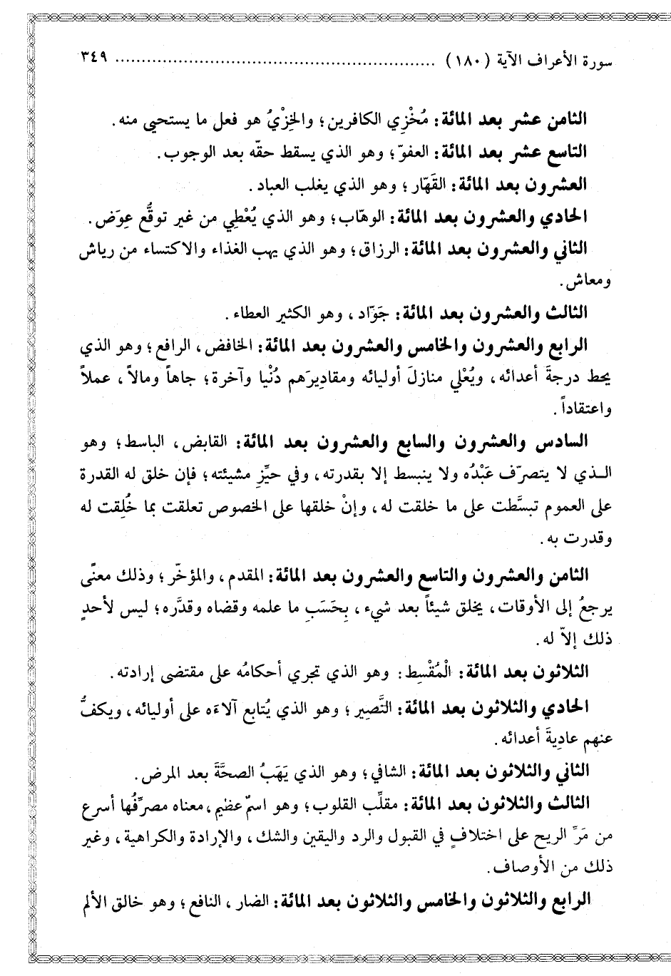 الثَّامِنُ وَالْعِشْرُونَ وَالتَّاسِعُ وَالْعِشْرُونَ بَعْدَ الْمِائَةِ: الْمُقَدِّمُ، وَالْمُؤَخِّرُ؛ وَذَلِكَ مَعْنًى يَرْجِعُ إلَى الْأَوْقَاتِ، يَخْلُقُ شَيْئًا بَعْدَ شَيْءٍ، بِحَسَبِ مَا عَلِمَهُ وَقَضَاهُ وَقَدَّرَهُ؛ لَيْسَ لِأَحَدٍ ذَلِكَ إلَّا لَهُ.