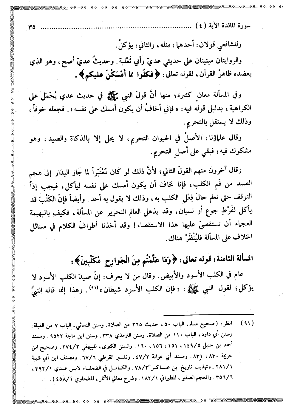[مَسْأَلَة صَيْدَ الْكَلْبِ الْأَسْوَدِ]