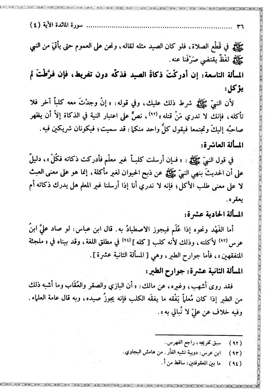 الْمَسْأَلَةُ الْحَادِيَةَ عَشْرَةَ: أَمَّا الْفَهْدُ وَنَحْوُهُ إذَا عُلِّمَ فَيَجُوزُ الِاصْطِيَادُ بِهِ.