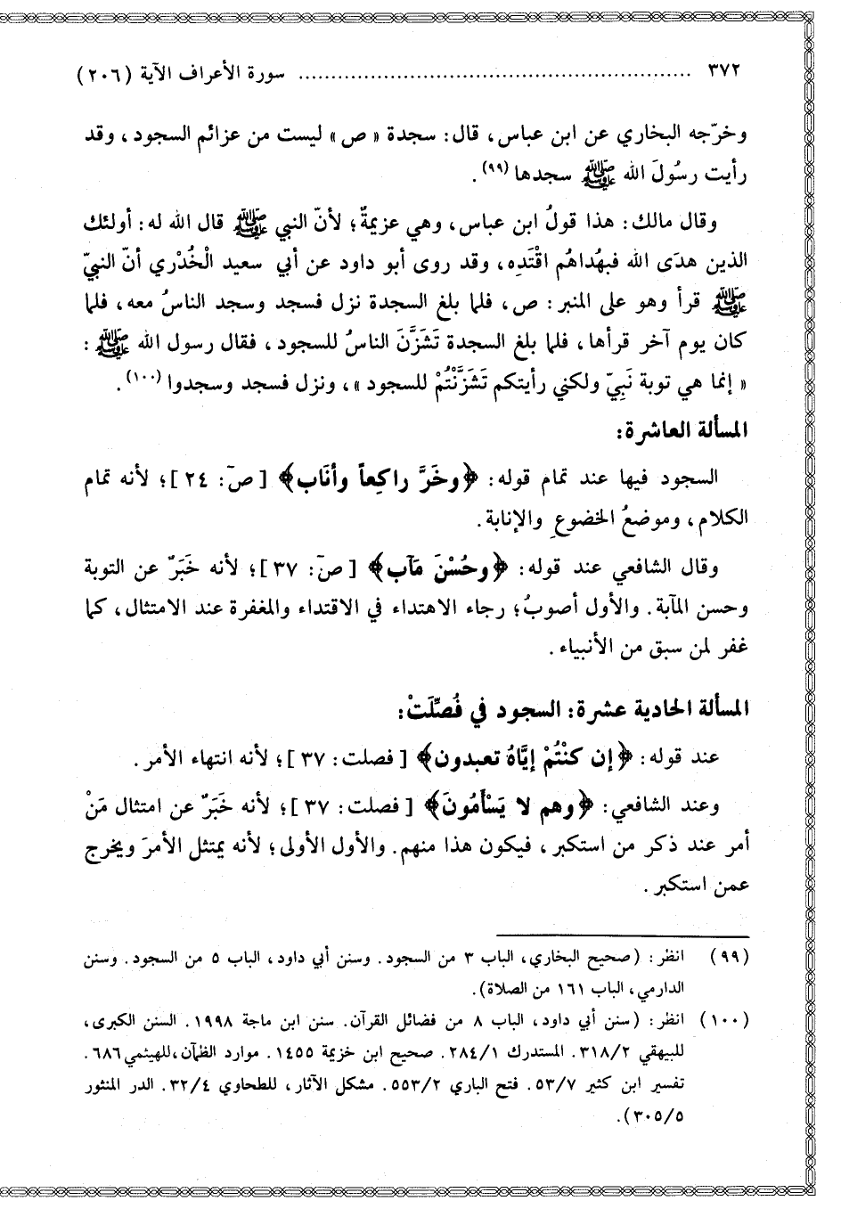 الْمَسْأَلَةُ الْحَادِيَةَ عَشْرَةَ: السُّجُودُ فِي فُصِّلَتْ: عِنْدَ قَوْلِهِ: {إِنْ كُنْتُمْ إِيَّاهُ تَعْبُدُونَ} [فصلت: 37] لِأَنَّهُ انْتِهَاءُ الْأَمْرِ.