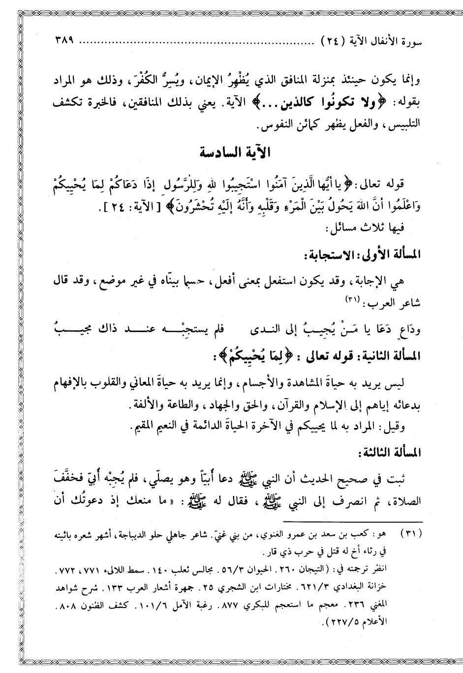 [الْآيَة السَّادِسَة قَوْله تَعَالَى يَا أَيّهَا الَّذِينَ آمَنُوا اسْتَجِيبُوا لِلَّهِ وَلِلرَّسُولِ]