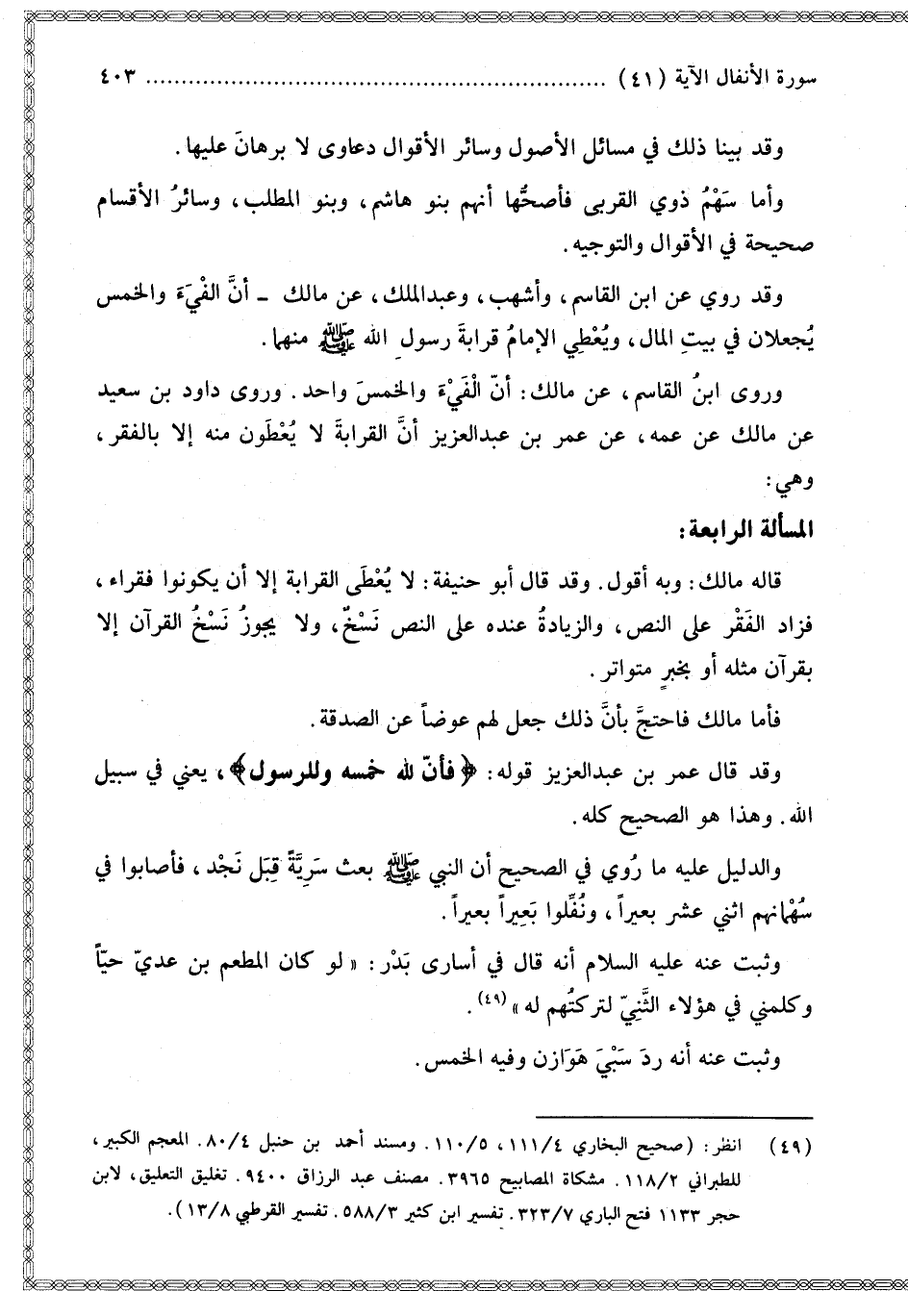 أَمَّا سَهْمُ ذَوِي الْقُرْبَى فَأَصَحُّهَا أَنَّهُمْ بَنُو هَاشِمٍ، وَبَنُو الْمُطَّلِبِ، وَسَائِرُ الْأَقْسَامِ صَحِيحَةٌ فِي الْأَقْوَالِ وَالتَّوْجِيهِ.