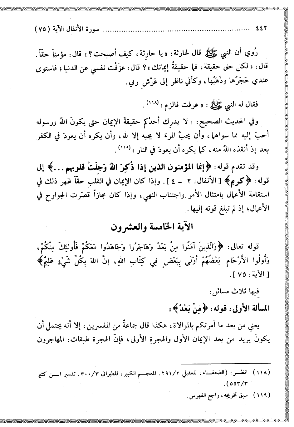 قَوْله تَعَالَى: {وَالَّذِينَ آمَنُوا مِنْ بَعْدُ وَهَاجَرُوا وَجَاهَدُوا مَعَكُمْ فَأُولَئِكَ مِنْكُمْ وَأُولُو الأَرْحَامِ بَعْضُهُمْ أَوْلَى بِبَعْضٍ فِي كِتَابِ اللَّهِ إِنَّ اللَّهَ بِكُلِّ شَيْءٍ عَلِيمٌ} [الأنفال: 75].