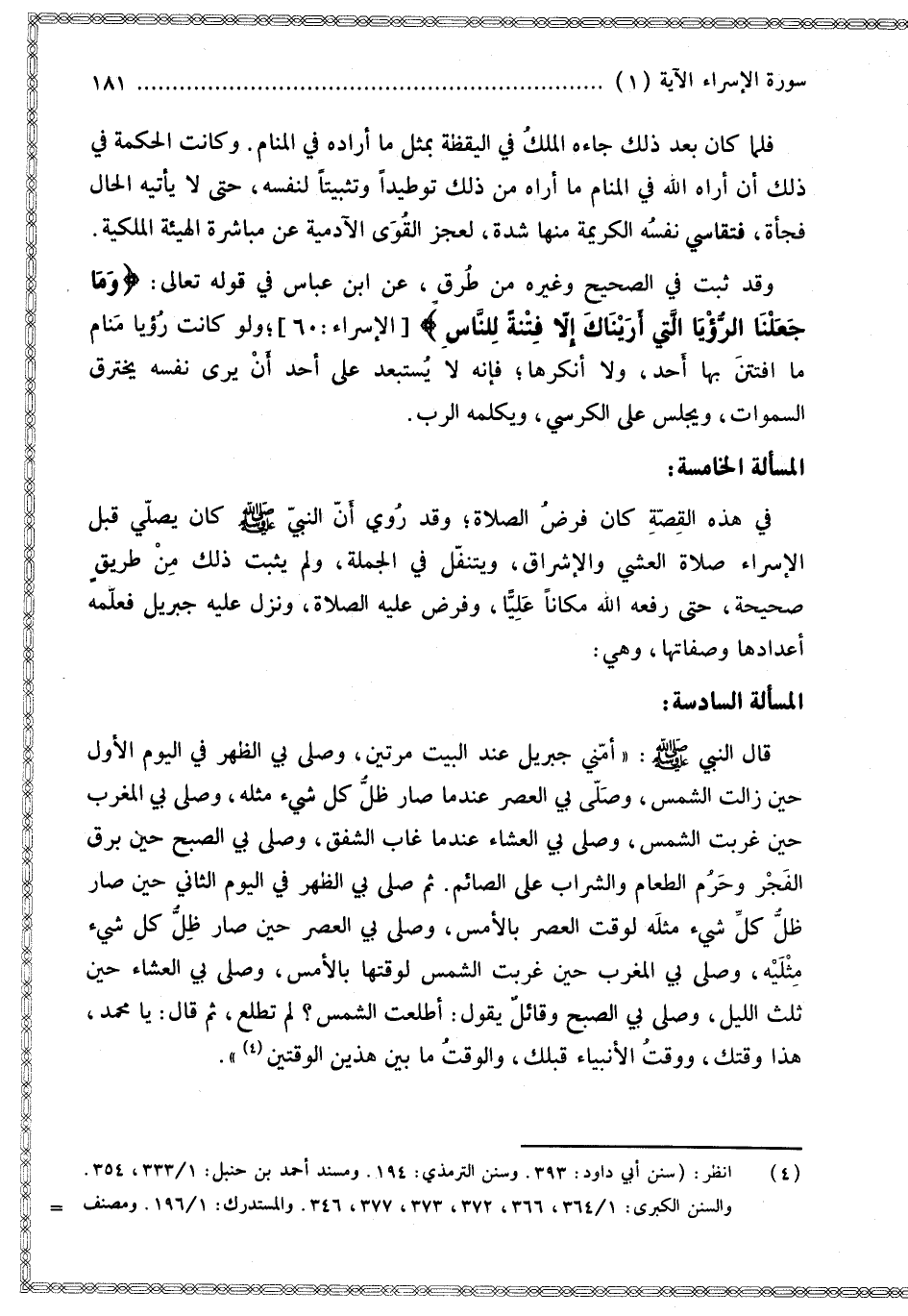 وَقَدْ ثَبَتَ فِي الصَّحِيحِ وَغَيْرِهِ مِنْ طُرُقٍ عَنْ ابْنِ عَبَّاسٍ فِي قَوْله تَعَالَى: {وَمَا جَعَلْنَا الرُّؤْيَا الَّتِي أَرَيْنَاكَ إِلا فِتْنَةً لِلنَّاسِ} [الإسراء: 60]؛ وَلَوْ كَانَتْ رُؤْيَا مَنَامٍ مَا اُفْتُتِنَ بِهَا أَحَدٌ، وَلَا أَنْكَرَهَا؛ فَإِنَّهُ لَا يُسْتَبْعَدُ عَلَى أَحَدٍ أَنْ يَرَى نَفْسَهُ يَخْتَرِقُ السَّمَوَاتِ، وَيَجْلِسُ عَلَى الْكُرْسِيِّ، وَيُكَلِّمُهُ الرَّبُّ.