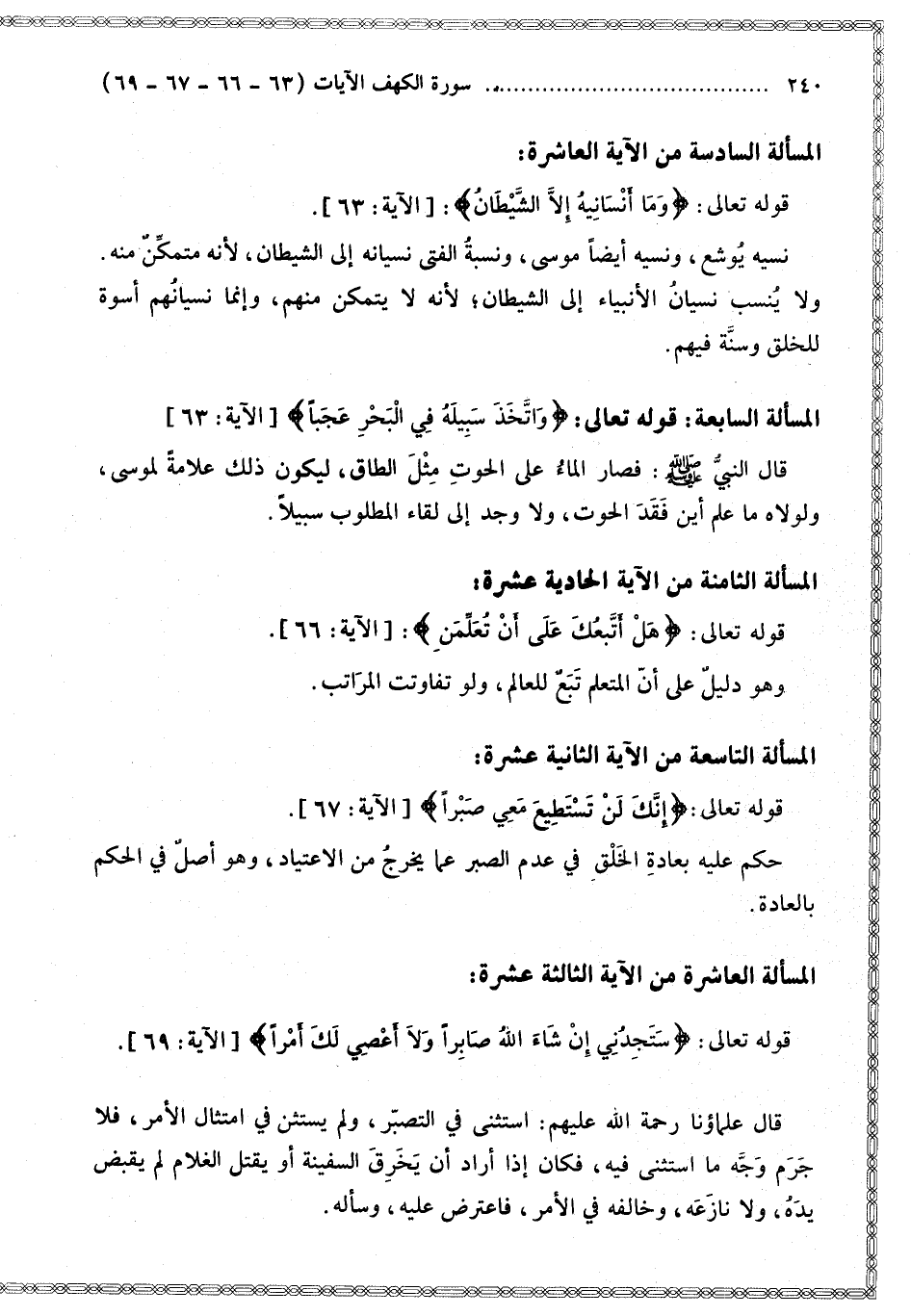 ِي} [الكهف: 66]: وَهُوَ دَلِيلٌ عَلَى أَنَّ الْمُتَعَلِّمَ تَبَعٌ لِلْعَالِمِ، وَلَوْ تَفَاوَتَتْ الْمَرَاتِبُ.