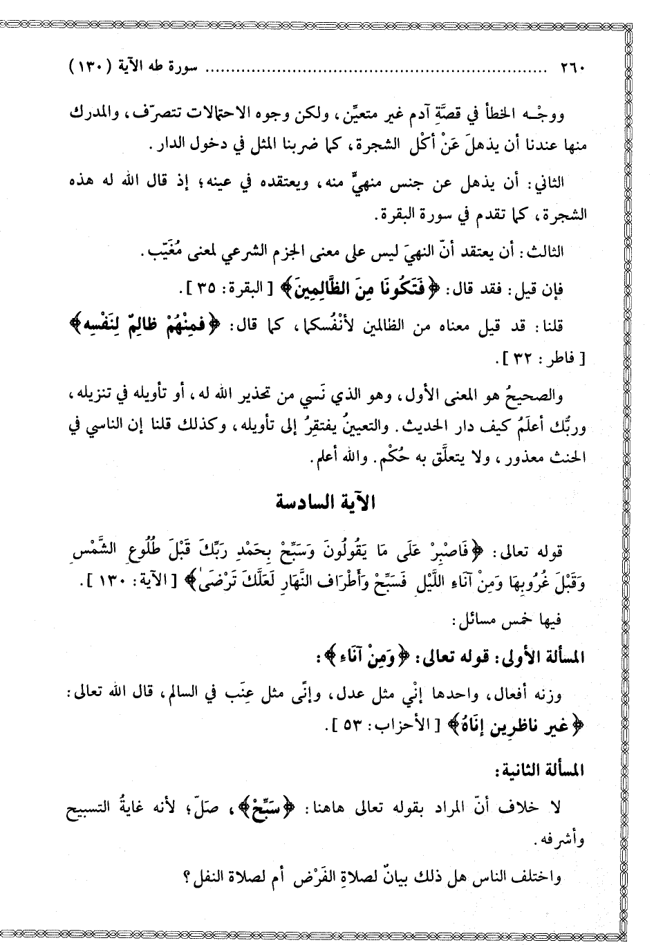 َ قَبْلَ طُلُوعِ الشَّمْسِ وَقَبْلَ غُرُوبِهَا وَمِنْ آنَاءِ اللَّيْلِ فَسَبِّحْ وَأَطْرَافَ النَّهَارِ لَعَلَّكَ تَرْضَى} [طه: 130].