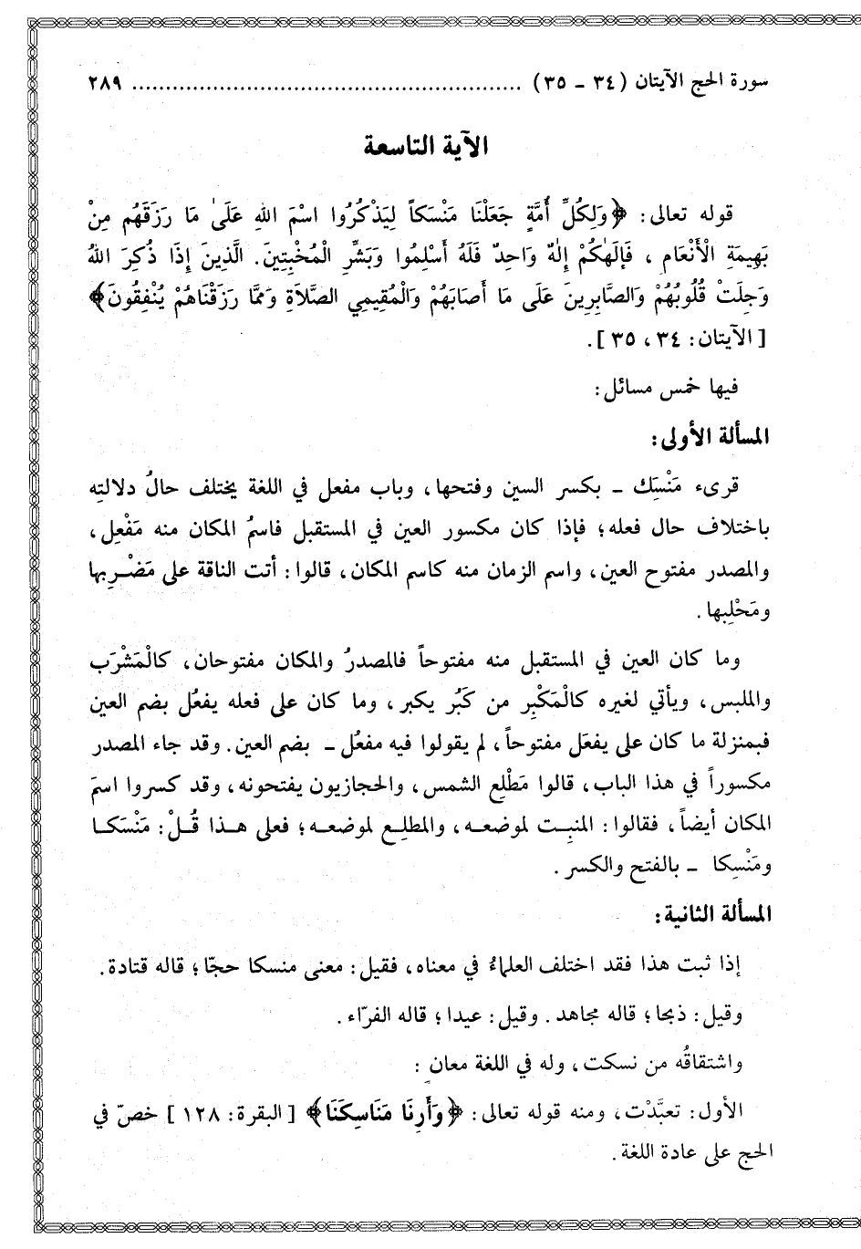 [الْآيَة التَّاسِعَة قَوْله تَعَالَى وَلِكُلِّ أُمَّةٍ جَعَلْنَا مَنْسَكًا]