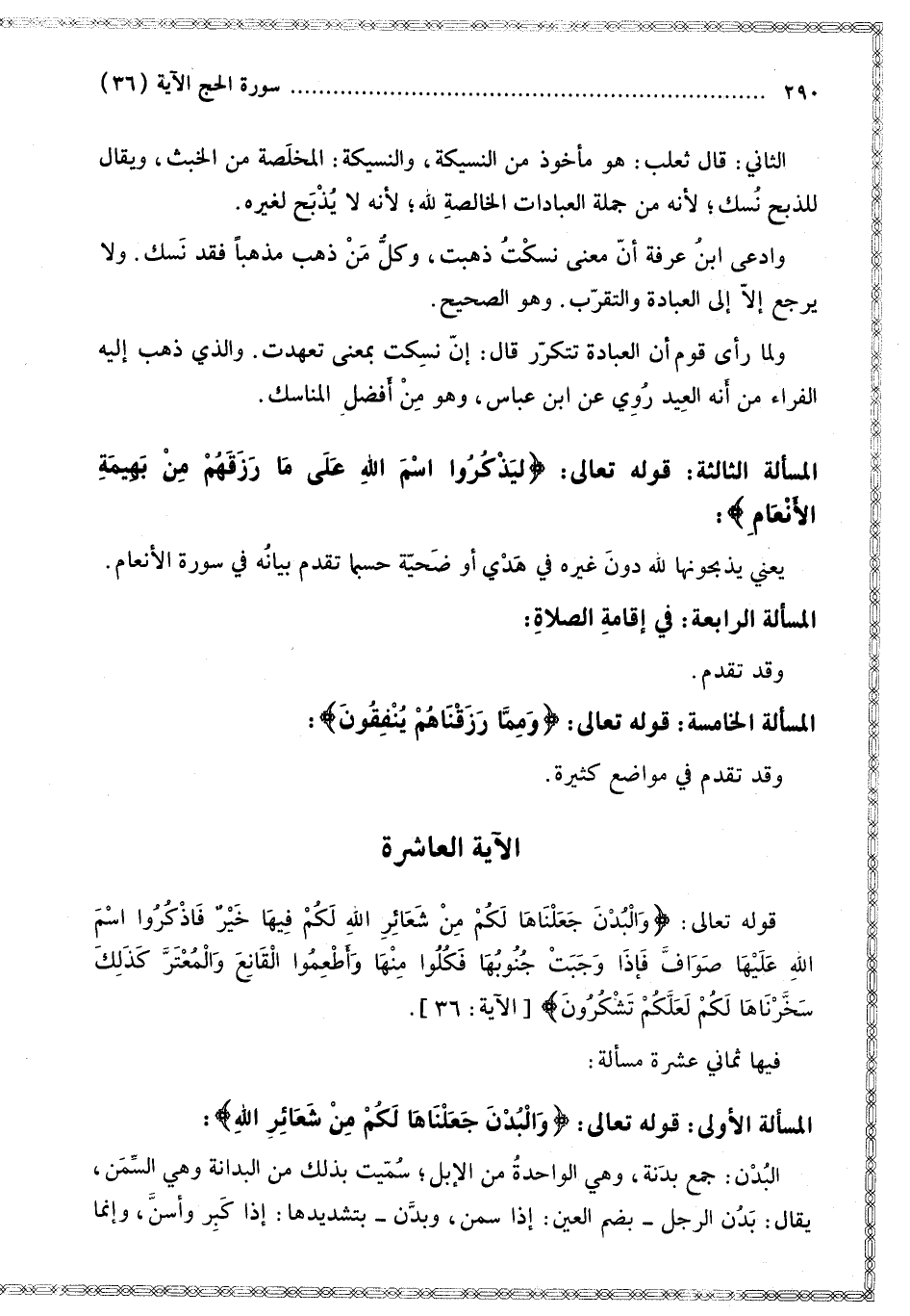 [الْآيَة الْعَاشِرَة قَوْله تَعَالَى وَالْبُدْنَ جَعَلْنَاهَا لَكُمْ مِنْ شَعَائِرِ اللَّهِ]