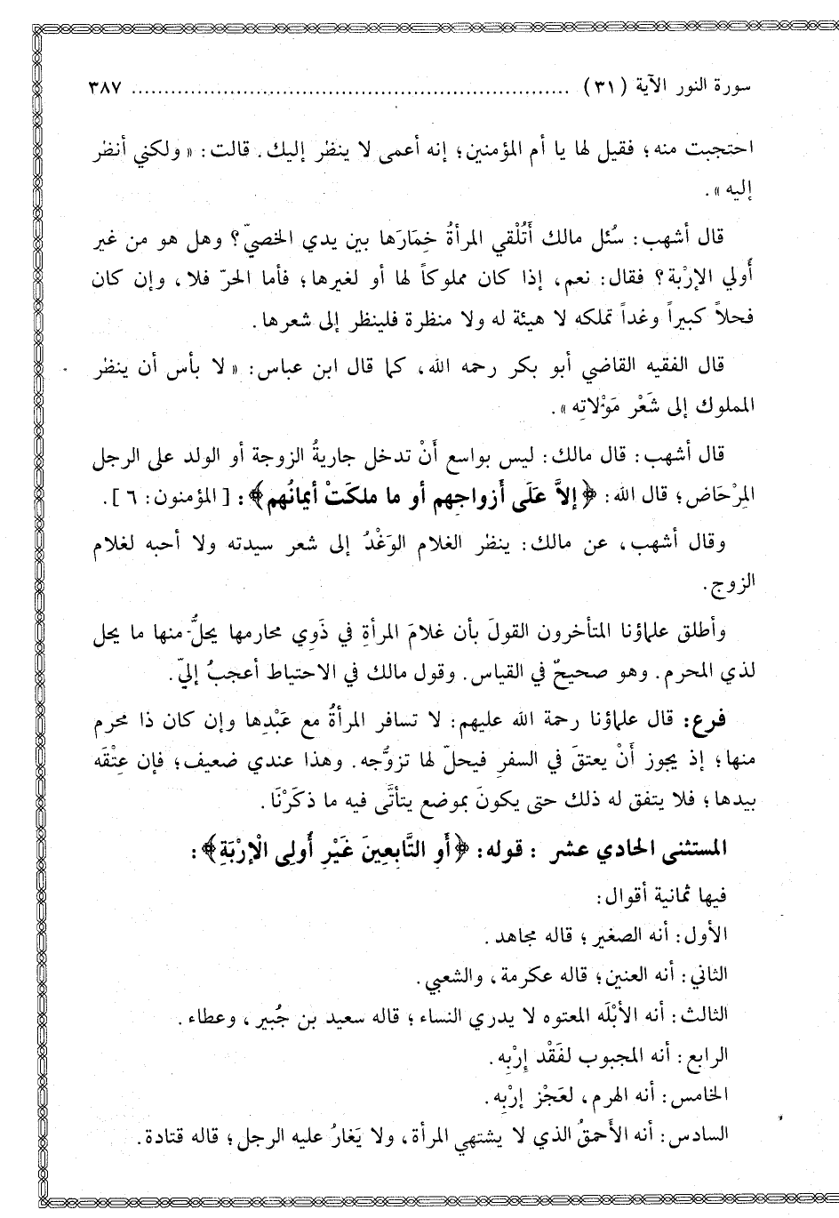 الْمُسْتَثْنَى الْحَادِيَ عَشَرَ: قَوْلُهُ: {أَوِ التَّابِعِينَ غَيْرِ أُولِي الإِرْبَةِ} [النور: 31]: