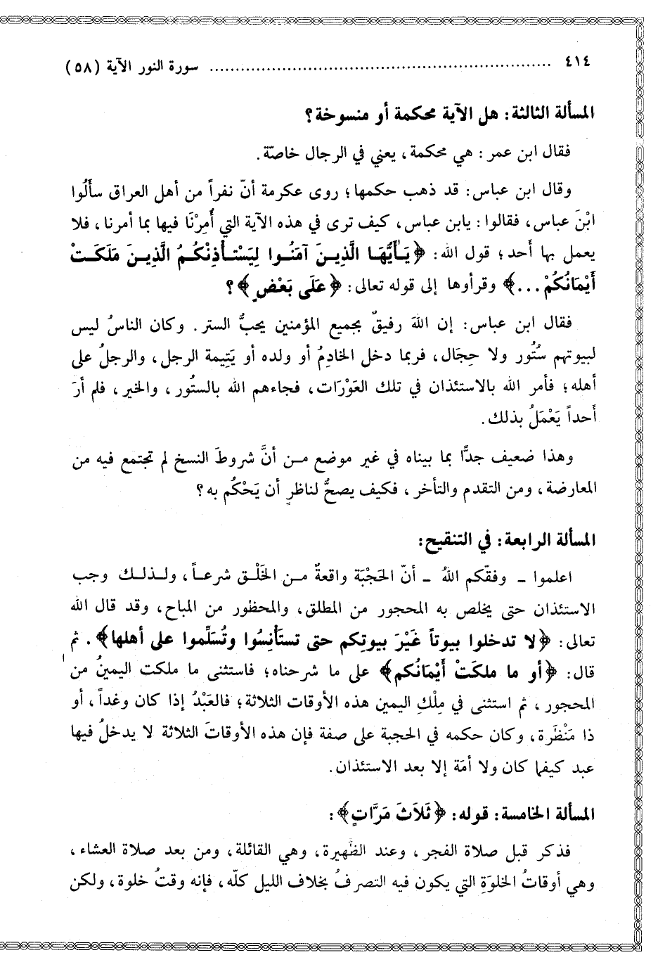 [مَسْأَلَة آيَة يَا أَيُّهَا الَّذِينَ آمَنُوا لِيَسْتَأْذِنْكُمْ الَّذِينَ مَلَكَتْ أَيْمَانُكُمْ هَلْ هِيَ محكمة أُمّ مَنْسُوخَة]