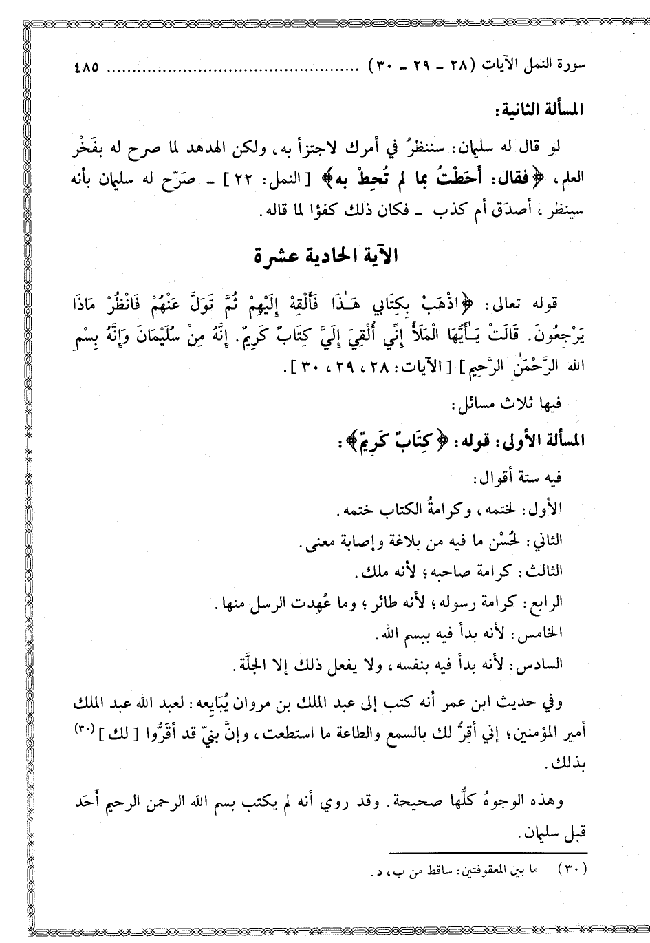ْ ثُمَّ تَوَلَّ عَنْهُمْ فَانْظُرْ مَاذَا يَرْجِعُونَ} [النمل: 28] {قَالَتْ يَا أَيُّهَا الْمَلأُ إِنِّي أُلْقِيَ إِلَيَّ كِتَابٌ كَرِيمٌ} [النمل: 29] {إِنَّهُ مِنْ سُلَيْمَانَ وَإِنَّهُ بِسْمِ اللَّهِ الرَّحْمَنِ الرَّحِيمِ} [النمل: 30].