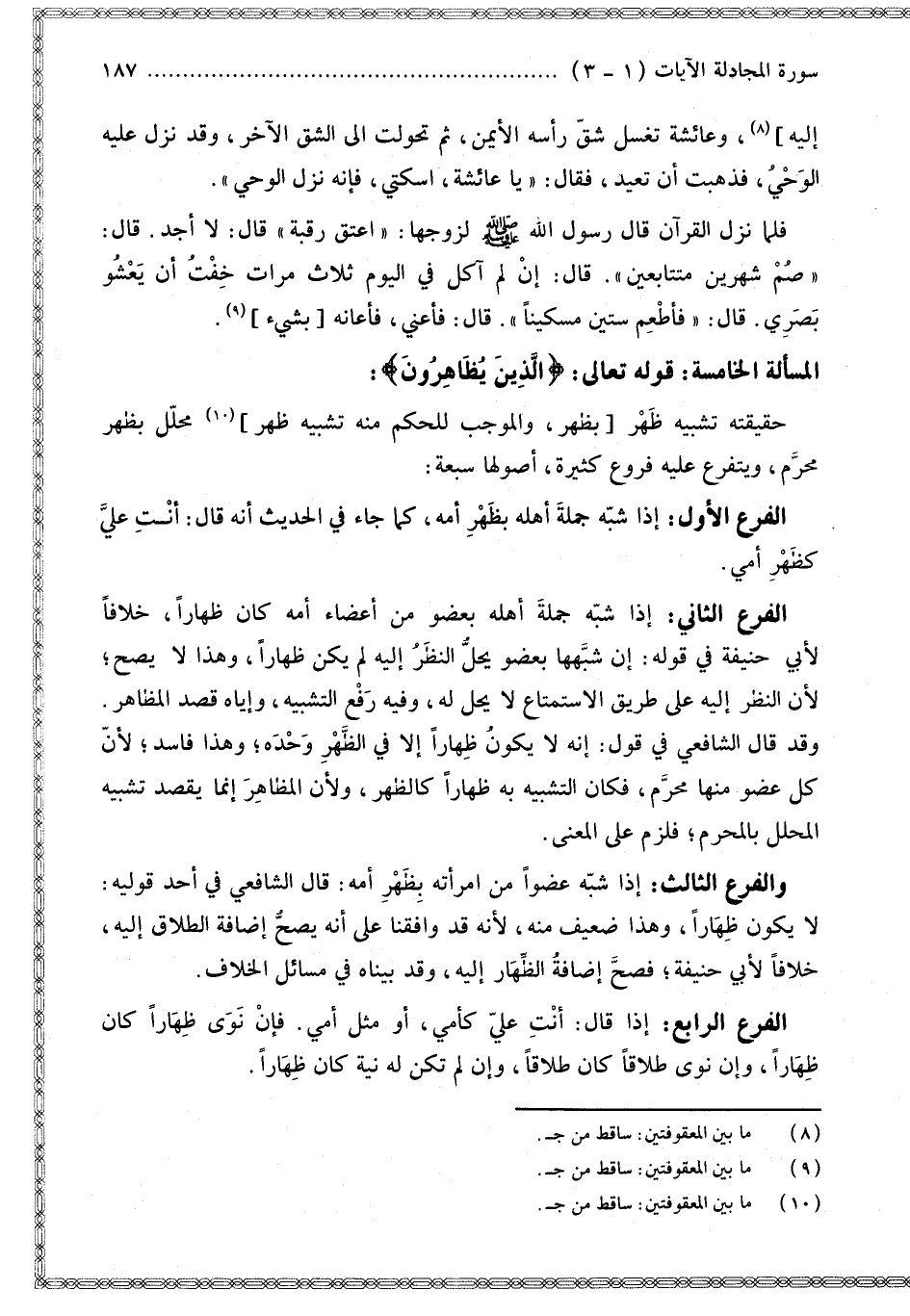 [مَسْأَلَة شَبَّهَ جُمْلَةَ أَهْلِهِ بِظَهْرِ أُمِّهِ]
