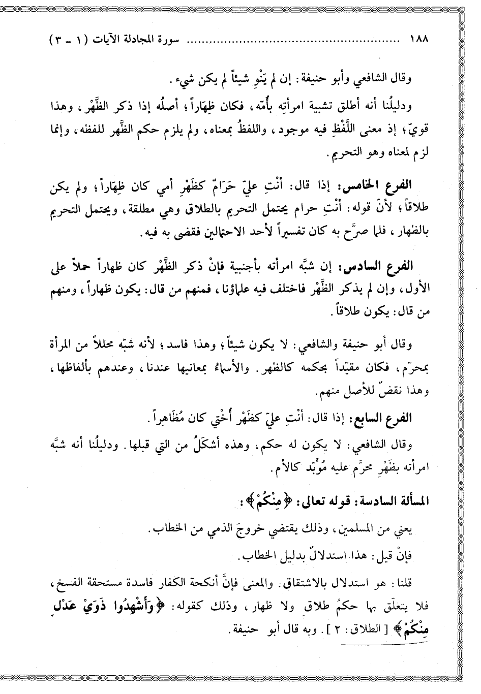 الْمَسْأَلَةُ السَّادِسَةُ قَوْلُهُ: {مِنْكُمْ} [المجادلة: 2].