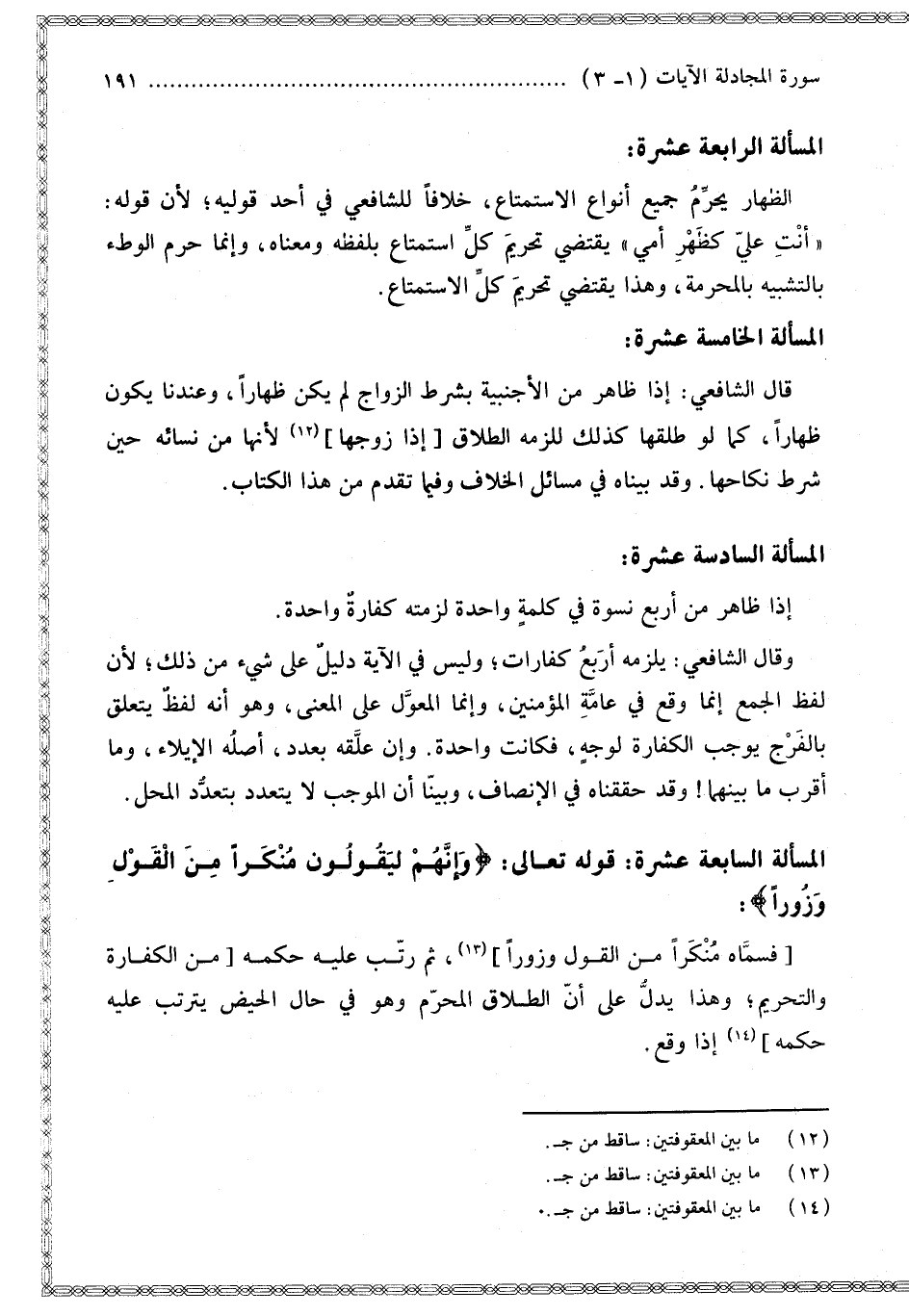 الْمَسْأَلَةُ السَّابِعَةَ عَشْرَةَ قَوْله تَعَالَى: {وَإِنَّهُمْ لَيَقُولُونَ مُنْكَرًا مِنَ الْقَوْلِ وَزُورًا} [المجادلة: 2] [فَسَمَّاهُ مُنْكَرًا مِنْ الْقَوْلِ وَزُورًا]، ثُمَّ رَتَّبَ عَلَيْهِ حُكْمَهُ [مِنْ الْكَفَّارَةِ وَالتَّحْرِيمِ؛ وَهَذَا يَدُلُّ عَلَى أَنَّ الطَّلَاقَ الْمُحَرَّمَ وَهُوَ فِي حَالِ الْحَيْضِ يَتَرَتَّبُ عَلَيْهِ حُكْمُهُ] إذَا وَقَعَ.