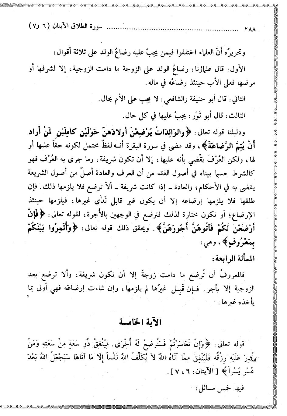 } [الطلاق: 6] {لِيُنْفِقْ ذُو سَعَةٍ مِنْ سَعَتِهِ وَمَنْ قُدِرَ عَلَيْهِ رِزْقُهُ فَلْيُنْفِقْ مِمَّا آتَاهُ اللَّهُ لا يُكَلِّفُ اللَّهُ نَفْسًا إِلا مَا آتَاهَا سَيَجْعَلُ اللَّهُ بَعْدَ عُسْرٍ يُسْرًا} [الطلاق: 7].