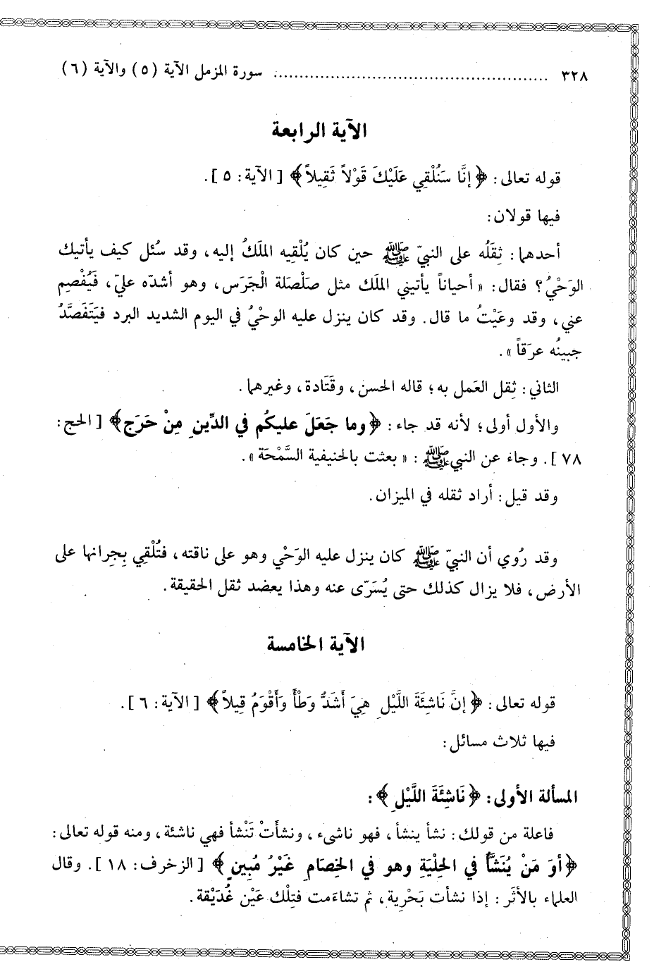 } [المزمل: 6]: فِيهَا ثَلَاثُ مَسَائِلَ: