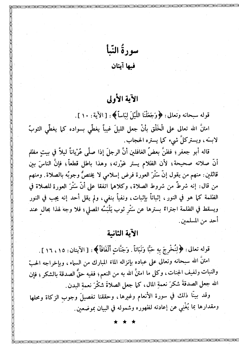 [سُورَة النَّبَأِ فِيهَا آيَتَانِ] [الْآيَةُ الْأُولَى قَوْله تَعَالَى وَجَعَلْنَا اللَّيْلَ لِبَاسًا]