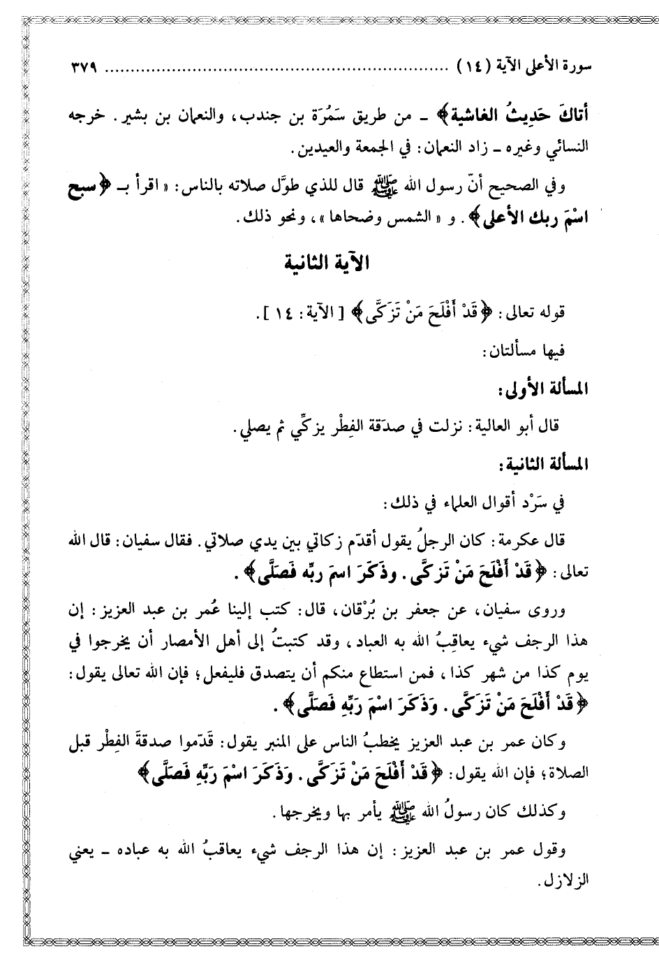 } [الأعلى: 14]: فِيهَا مَسْأَلَتَانِ: